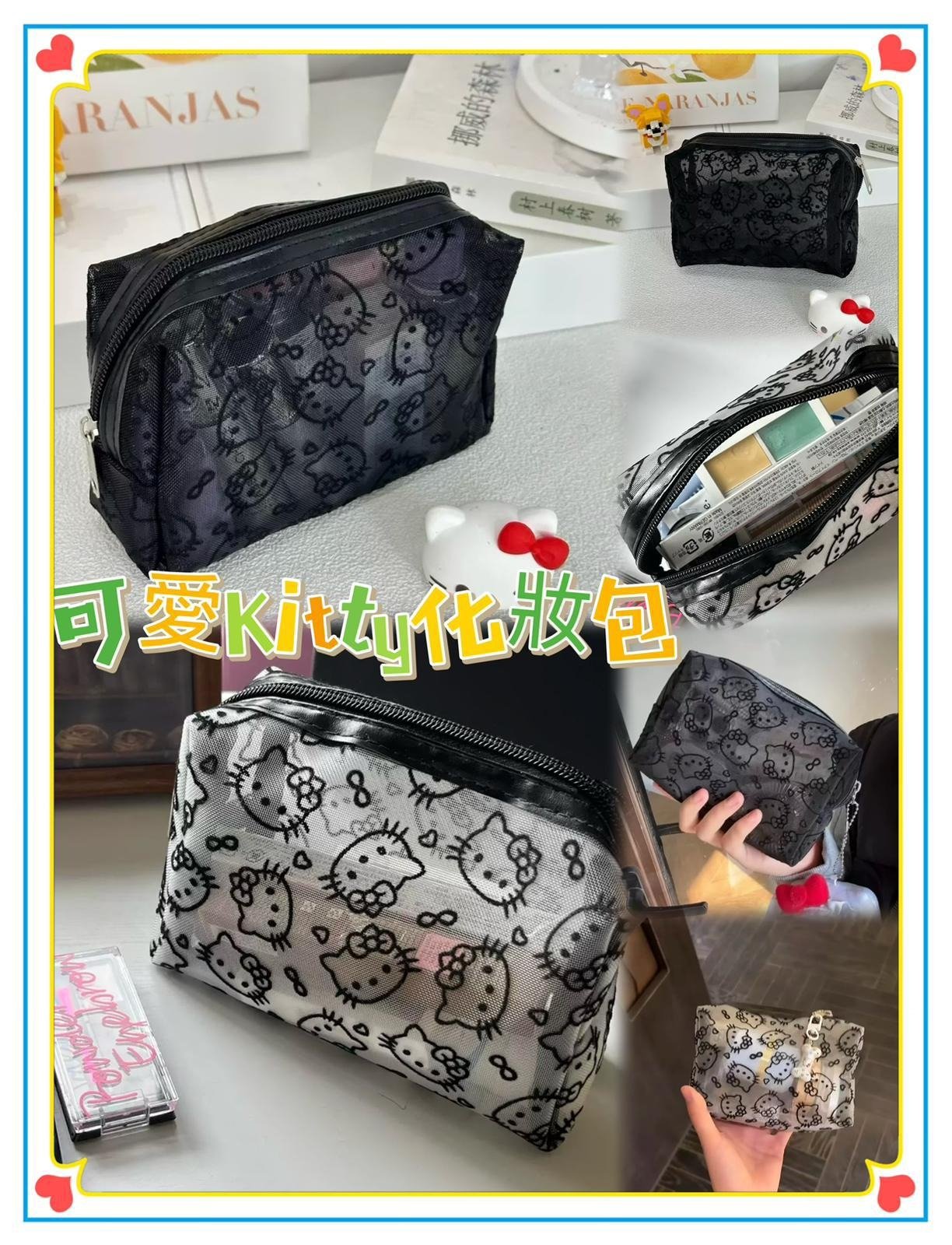 可愛Kitty網紗化妝包 (一套2個顏色)送小骨頭配件🖤可愛Kitty網紗化妝包🤍(一套2個顏色)送小骨頭配件🖤紗網材質,拉鍊開口,💄可以當作化妝包/筆袋使用,大小適中,方便隨身攜帶尺寸:14 x 10cm