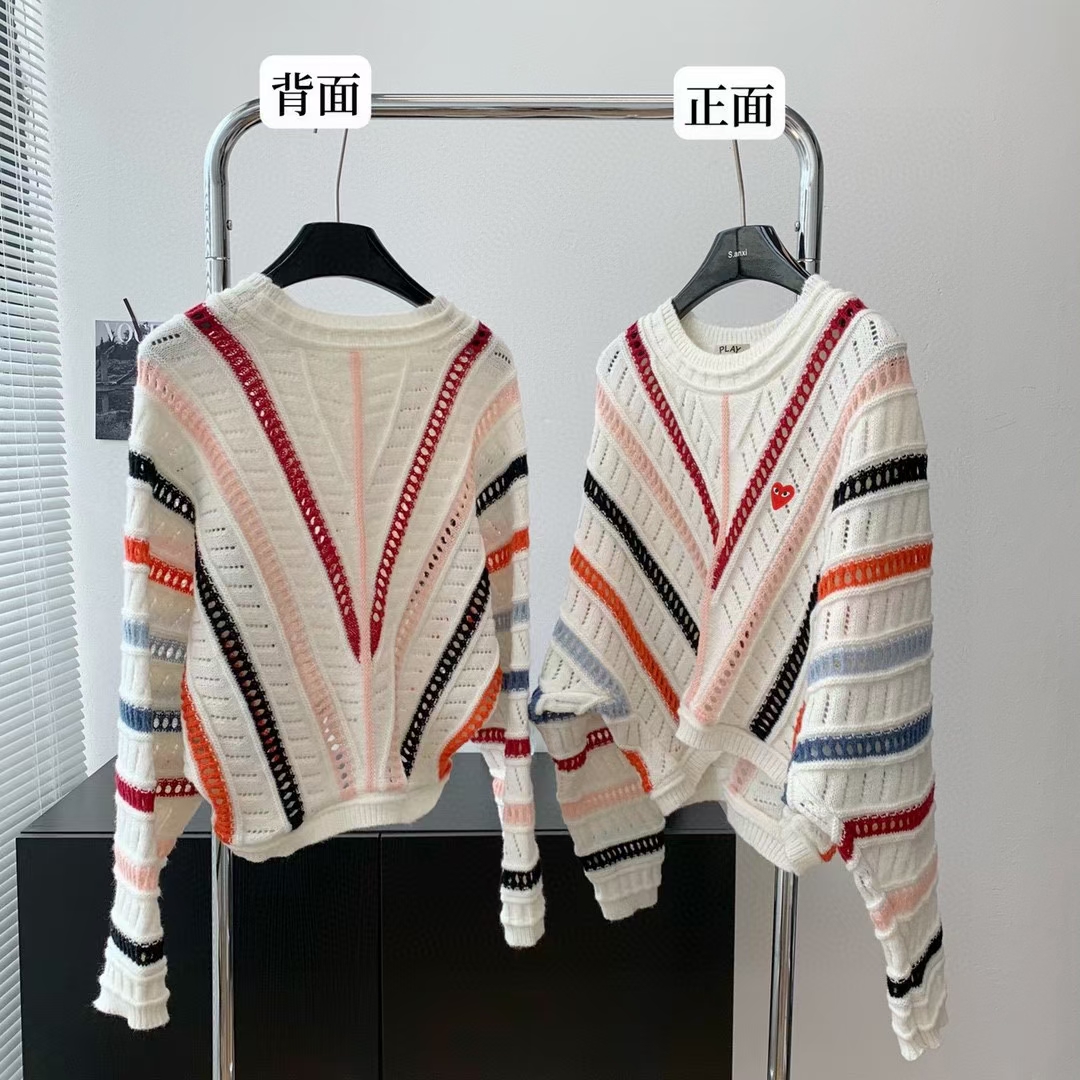 日本🇯🇵 CDG PLAY 彩虹條紋鏤空鈎花圓領冷衫