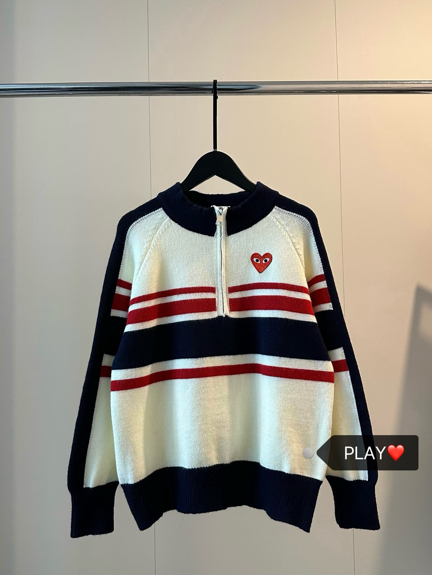 日本🇯🇵 CDG PLAY 愛心刺繡半拉鍊條紋冷衫