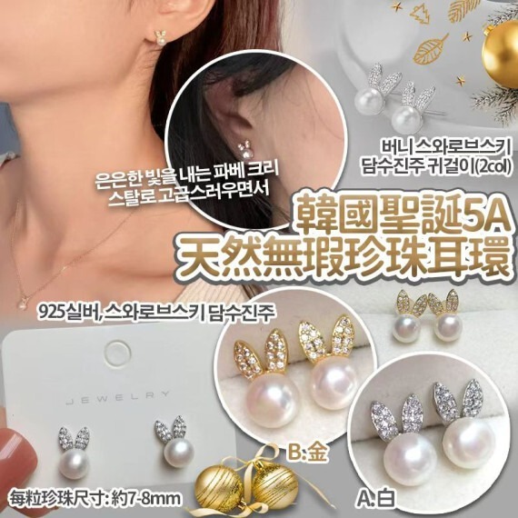 韓國🇰🇷聖誕5A無瑕天然淡水珍珠耳環(7mm)