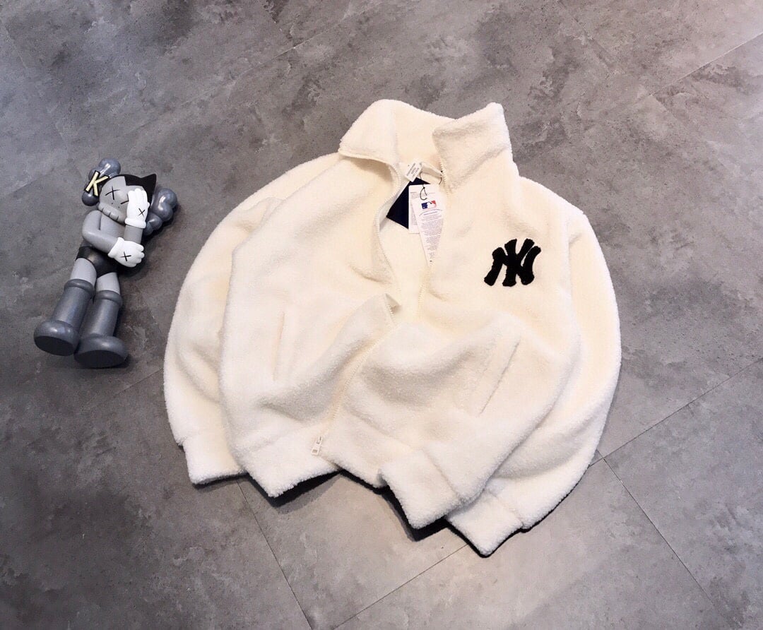 韓國🇰🇷 MLB NY毛巾繡羊羔絨拉鍊外套