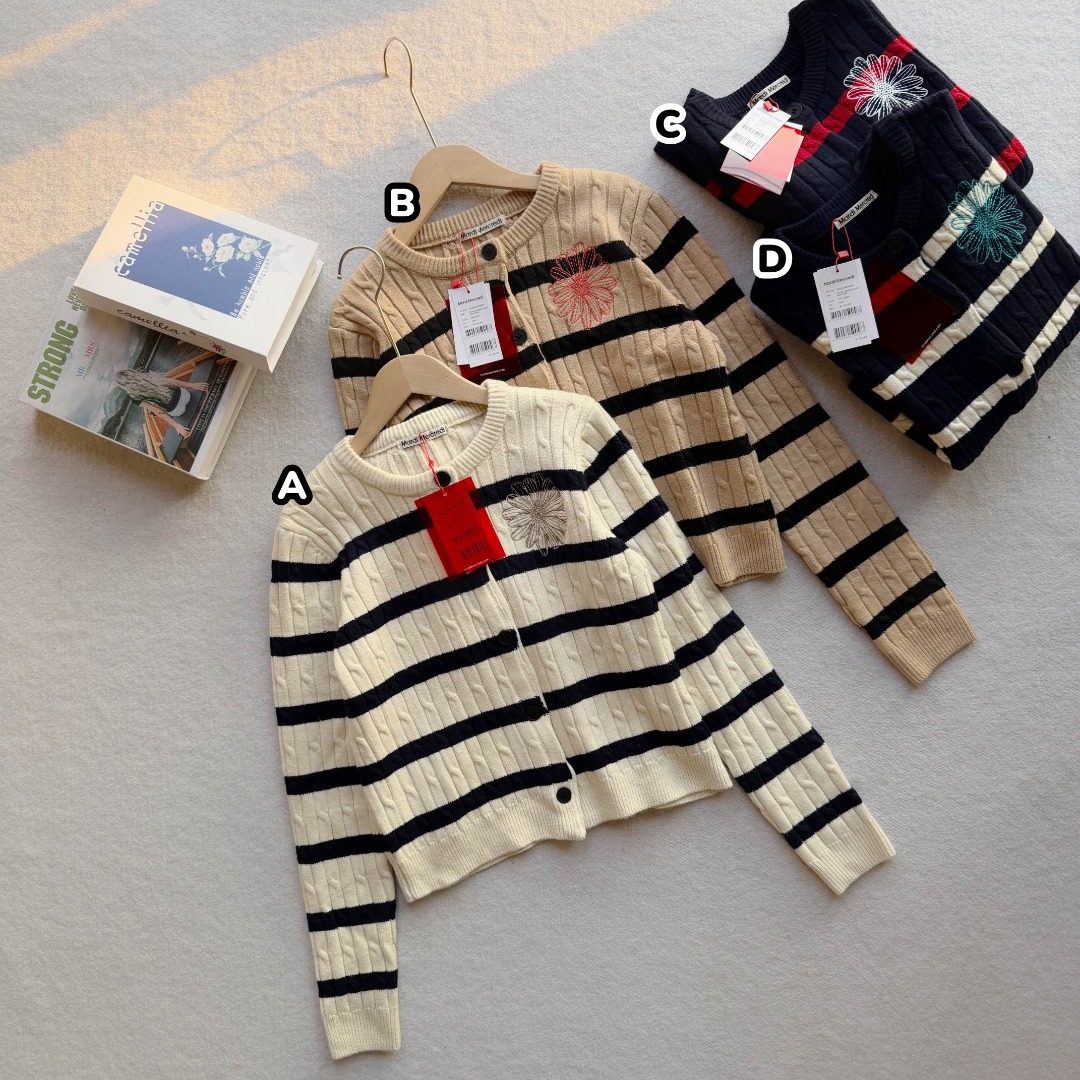 韓國🇰🇷 Mardi Mercredi 花朵刺繡條紋開襟冷衫