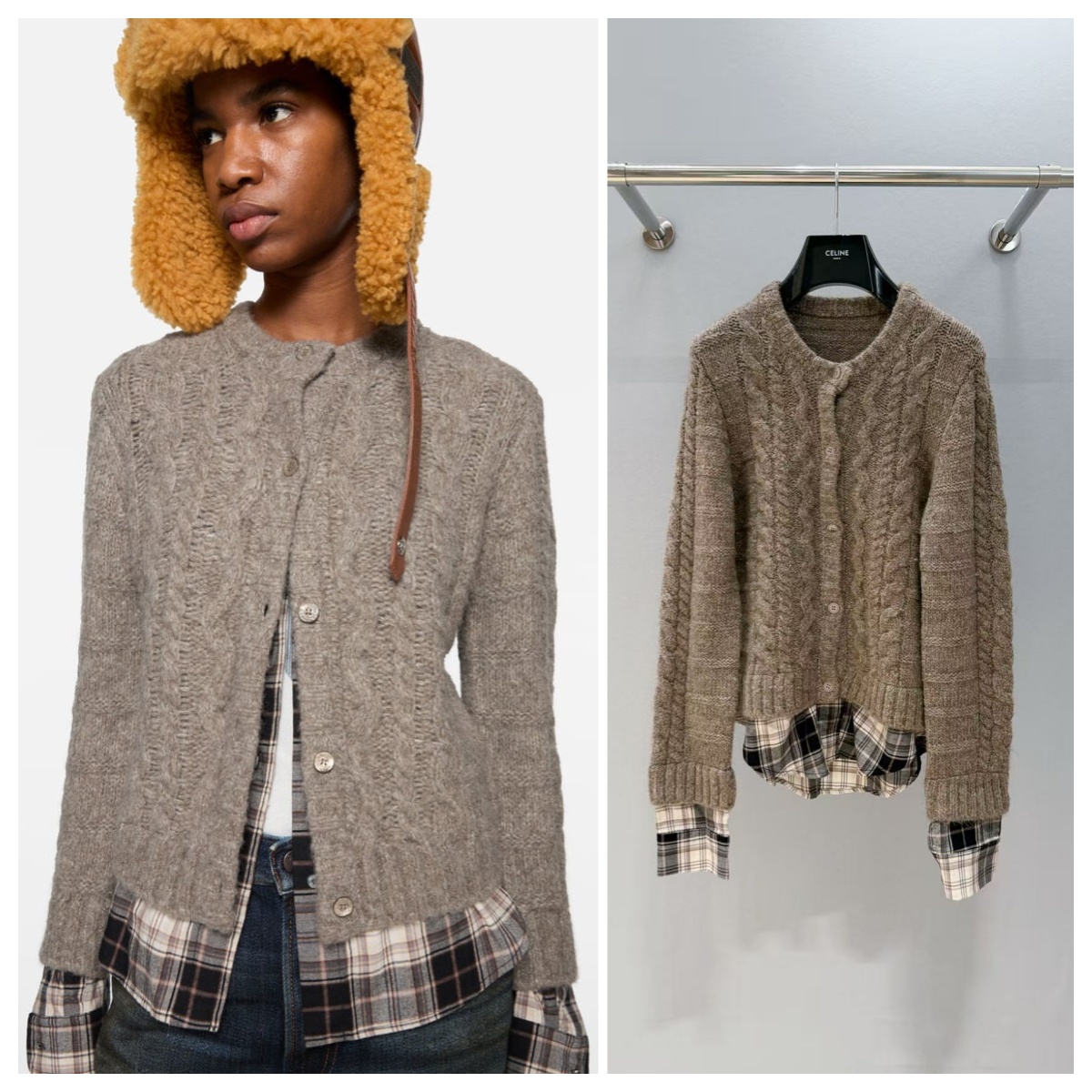 Acne Studios 格紋拼接假兩件毛衣開衫