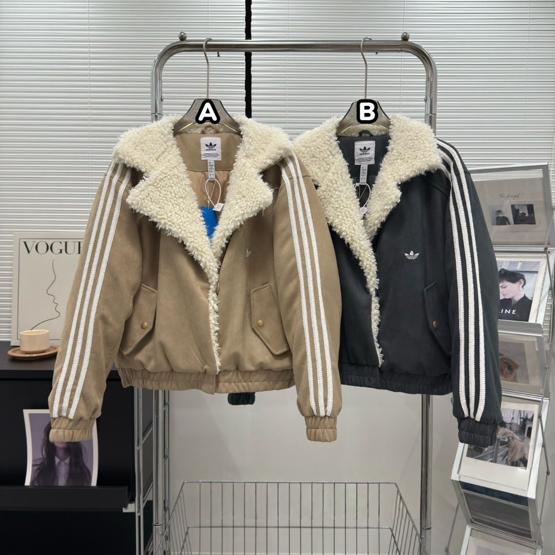 Adidas 仿麂皮拼駝絨毛棉服外套
