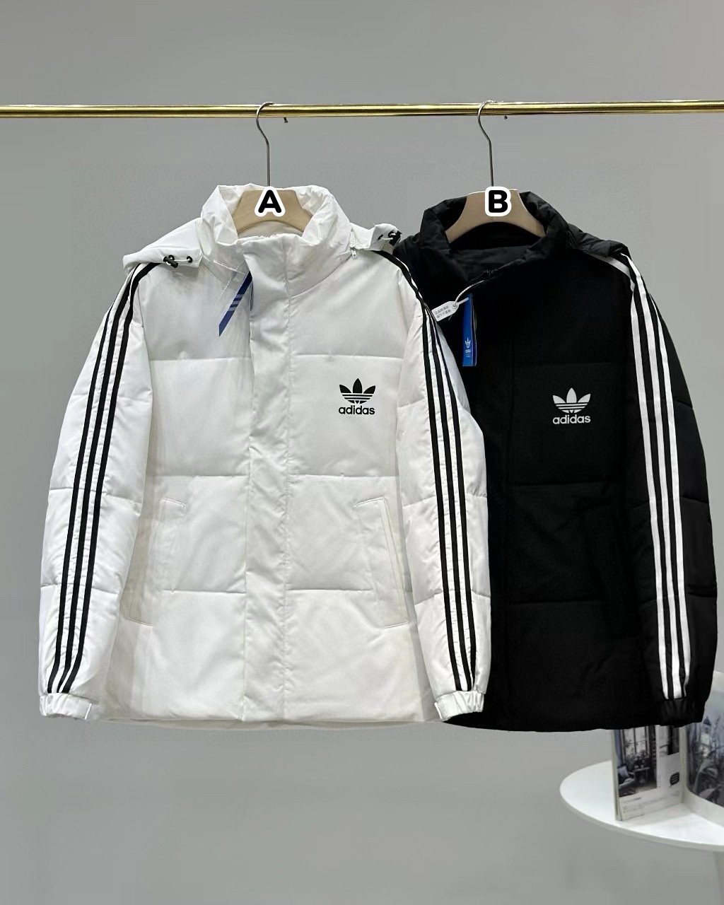 Adidas 側邊三條槓連帽拉鍊棉服外套
