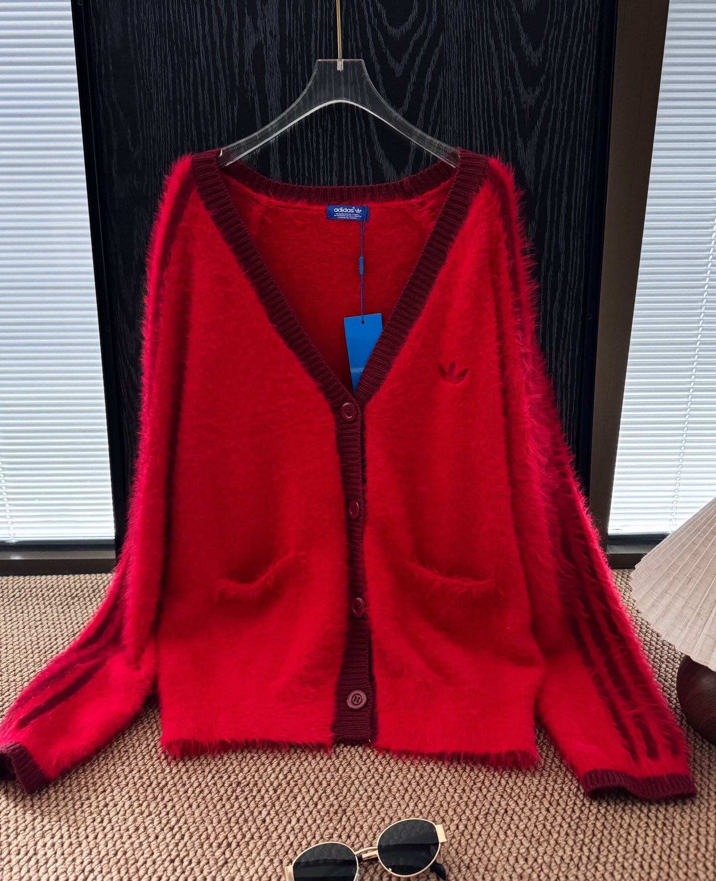Adidas 水貂絨V領羊毛開襟冷衫