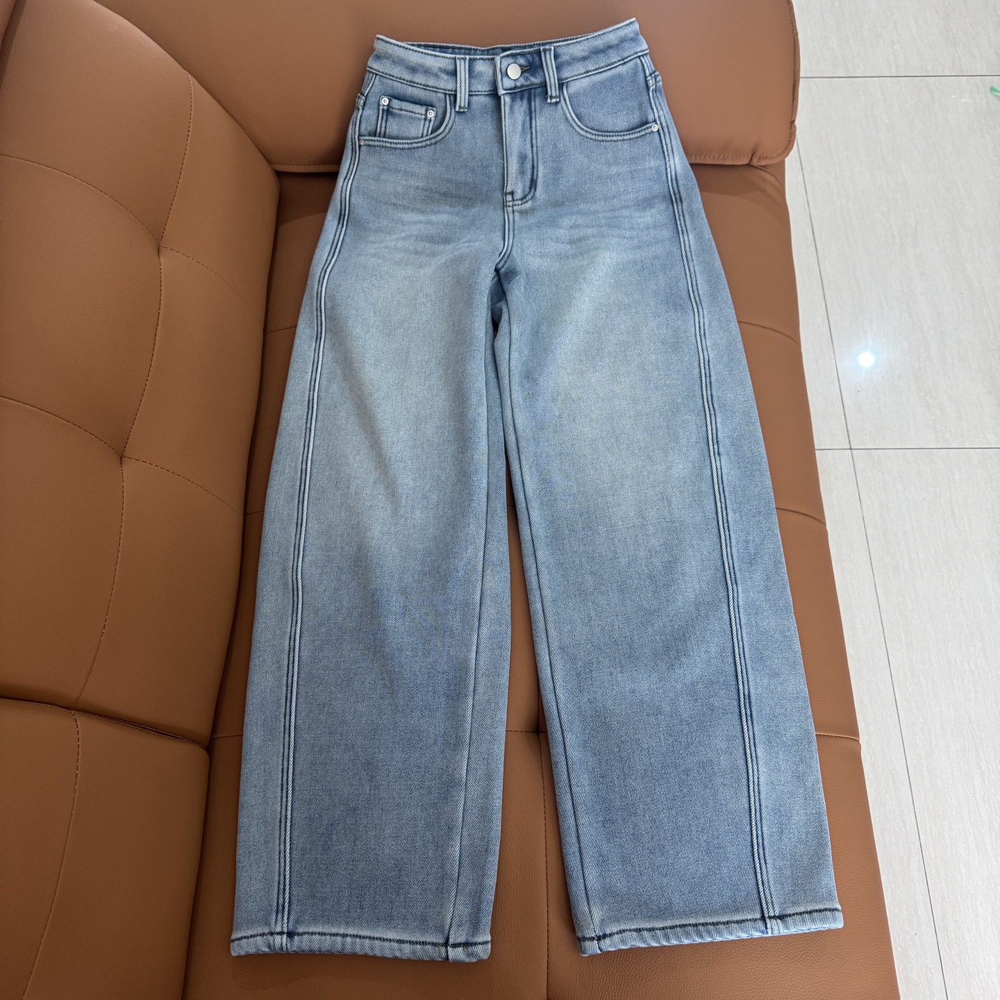 Alexander wang 高腰闊腿加絨牛仔長褲