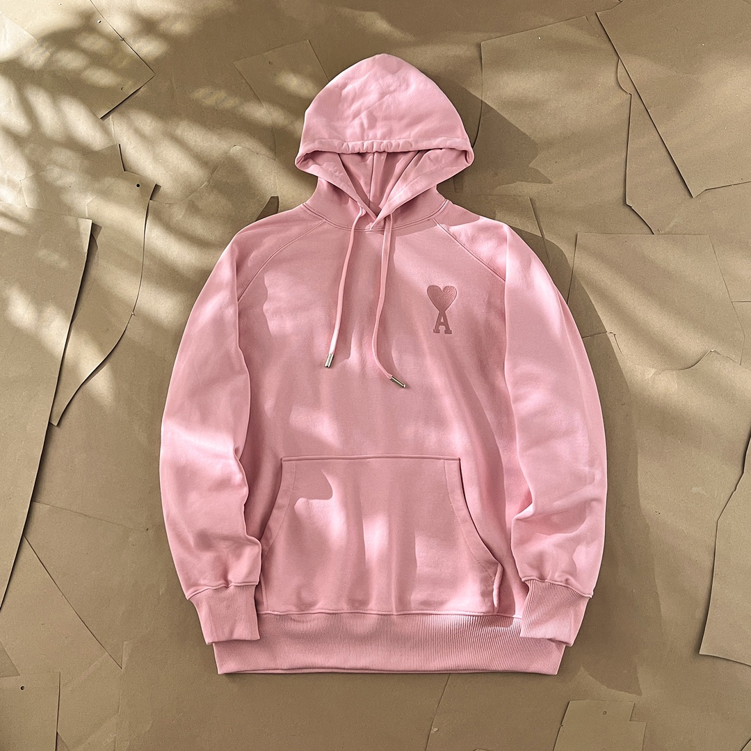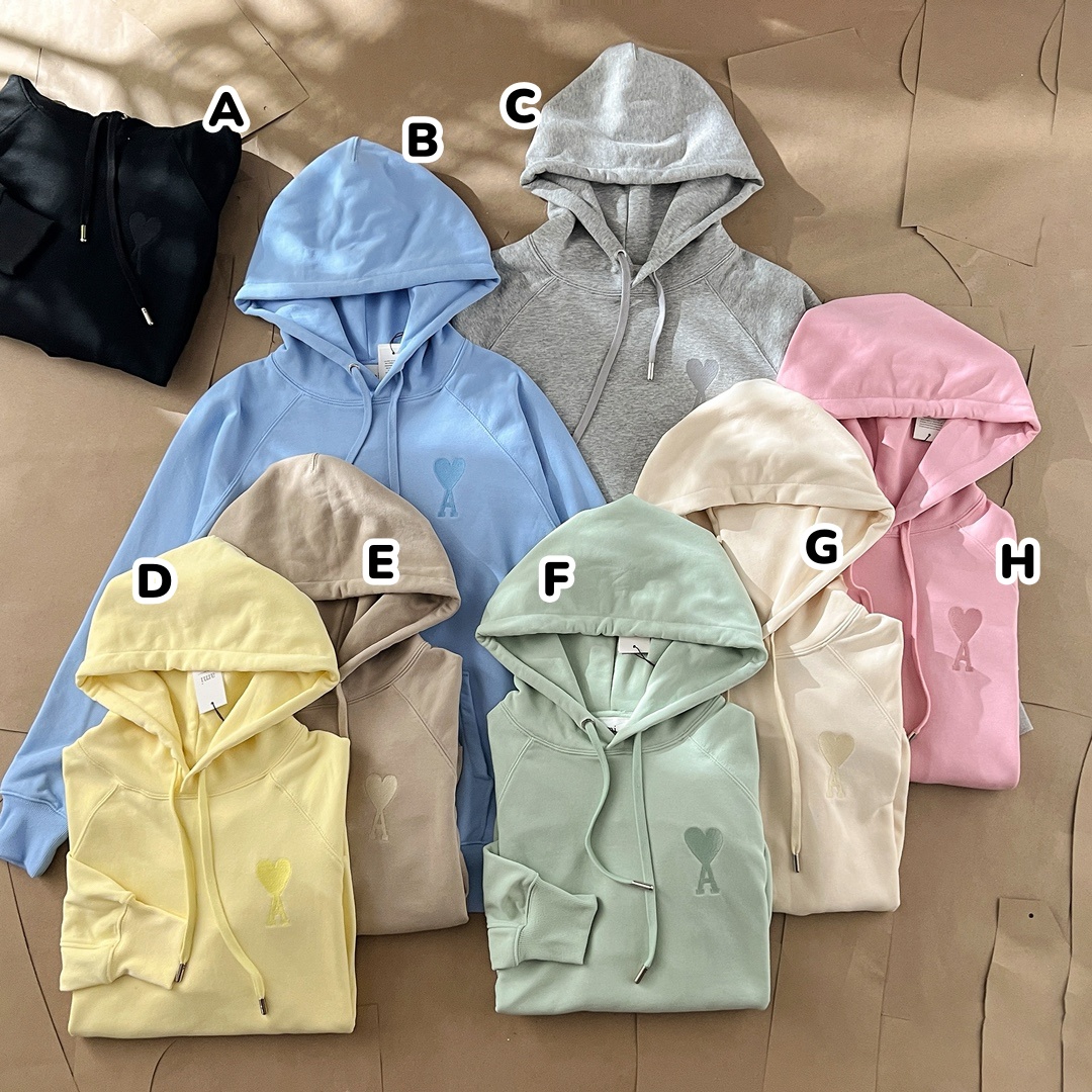 Ami 馬卡龍色系大愛心刺繡連帽衛衣