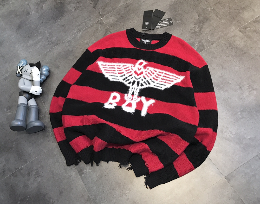 B0Y LONDON 黑紅條紋圓領冷衫
