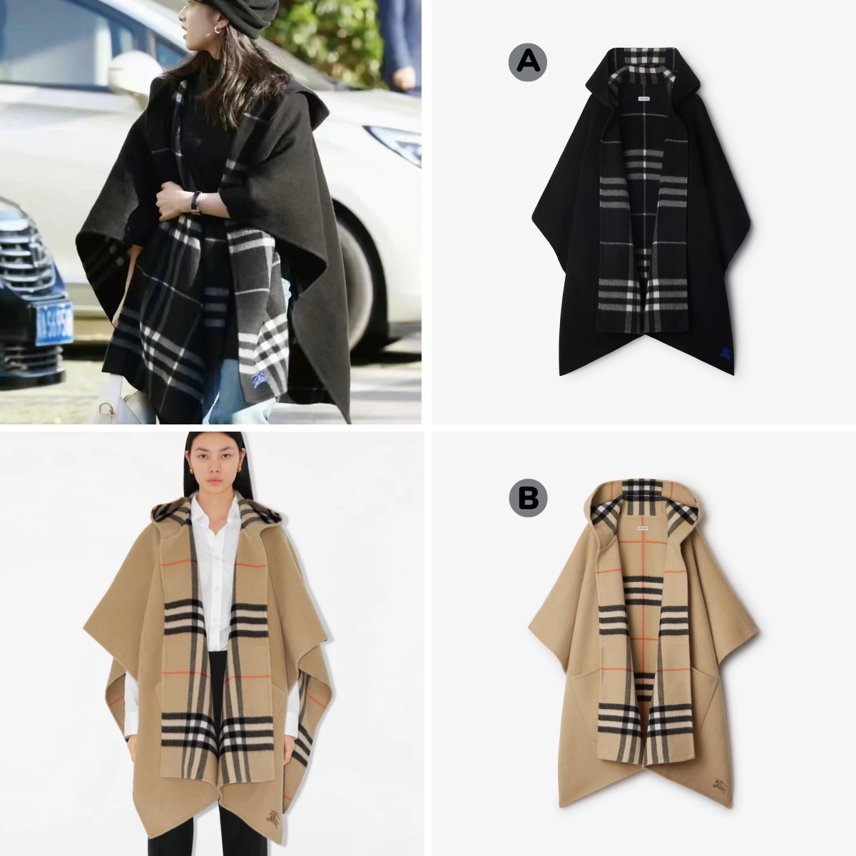 BURBERRY Reversible Check Cashmere Cape 雙面格紋羊絨斗篷披肩