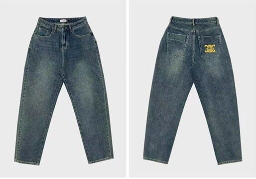 CELINE 凱旋門刺繡牛仔長褲