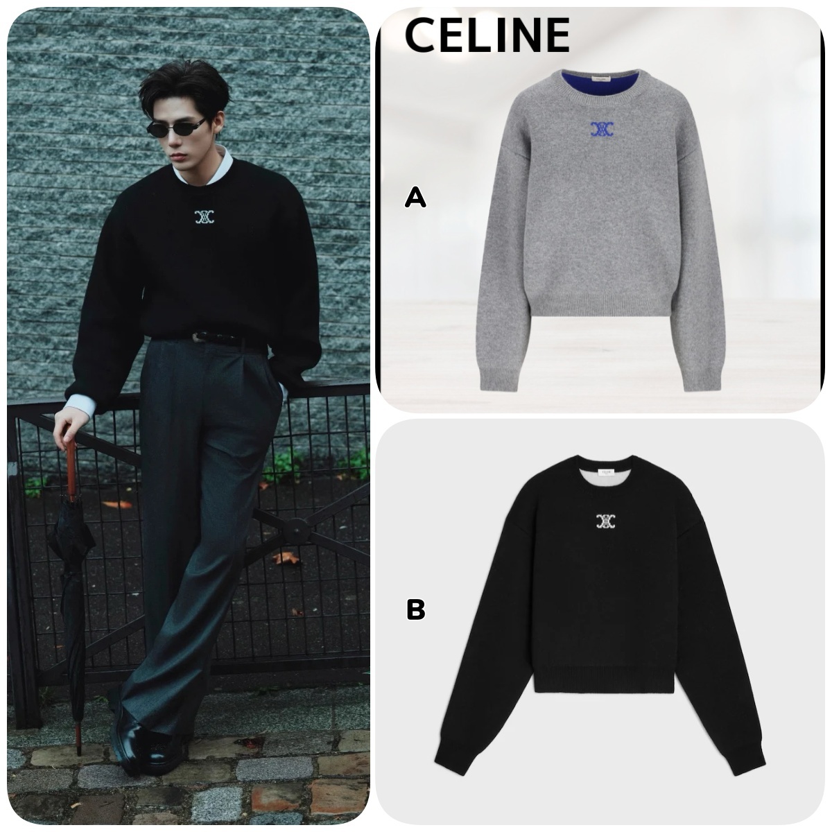 CELINE 徽標緹花圓領羊毛羊絨冷衫