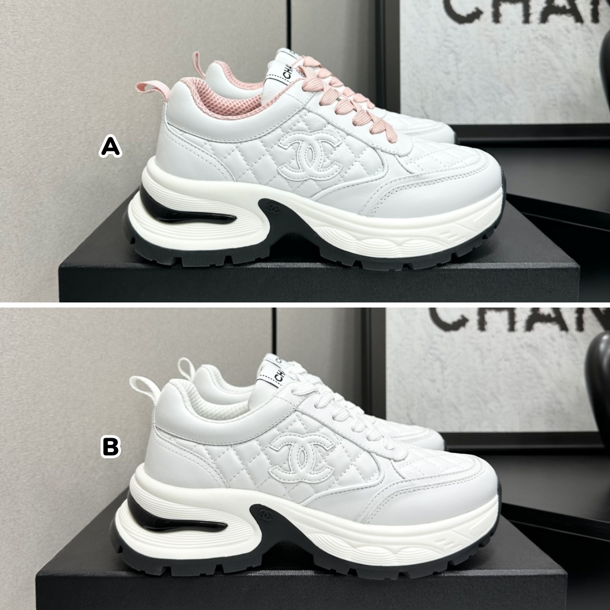 如果在意舒適度,且平時穿著以運動風為主的話,則能選擇舒適度最為優異的運動鞋。Chanel 完全跟上時下的運動風潮,既有好搭的小白鞋、也有類似老爹鞋的設計,其中白底黑 LOGO 的款式還被暱稱為熊貓鞋,極為亮眼的造型在社群媒體上大受歡迎,想領先流行的人不能錯過。