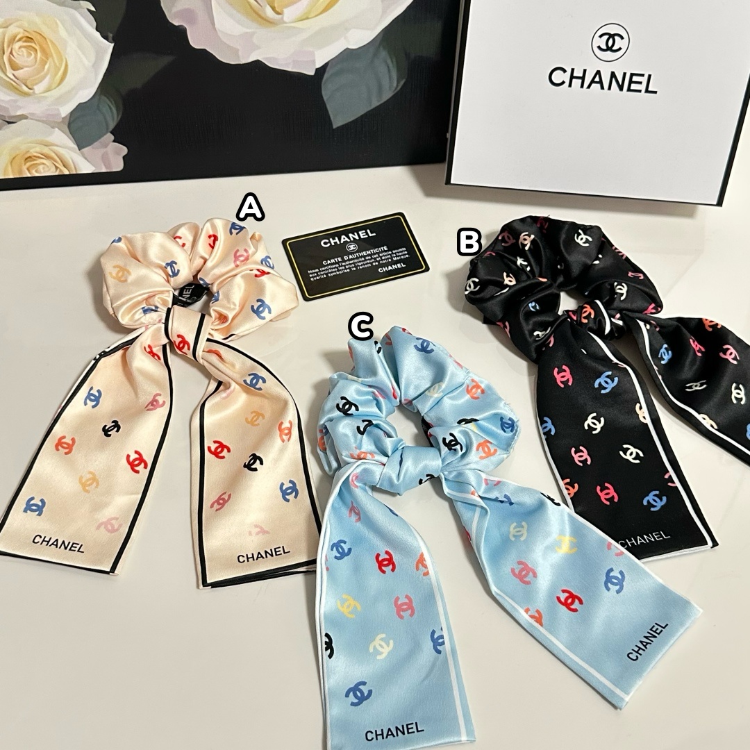 CHANEL 字母飄帶髮圈