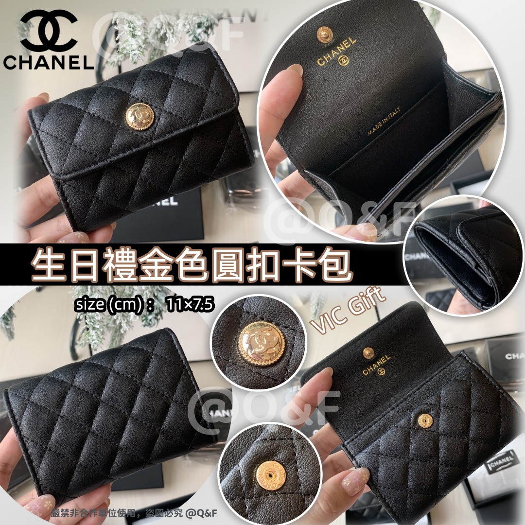 CHANEL 生日禮金色圓扣卡包 VIC Gift