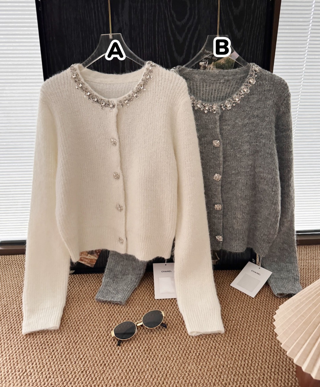 CHANEL 羊毛馬海毛鑲鑽圓領開襟冷衫
