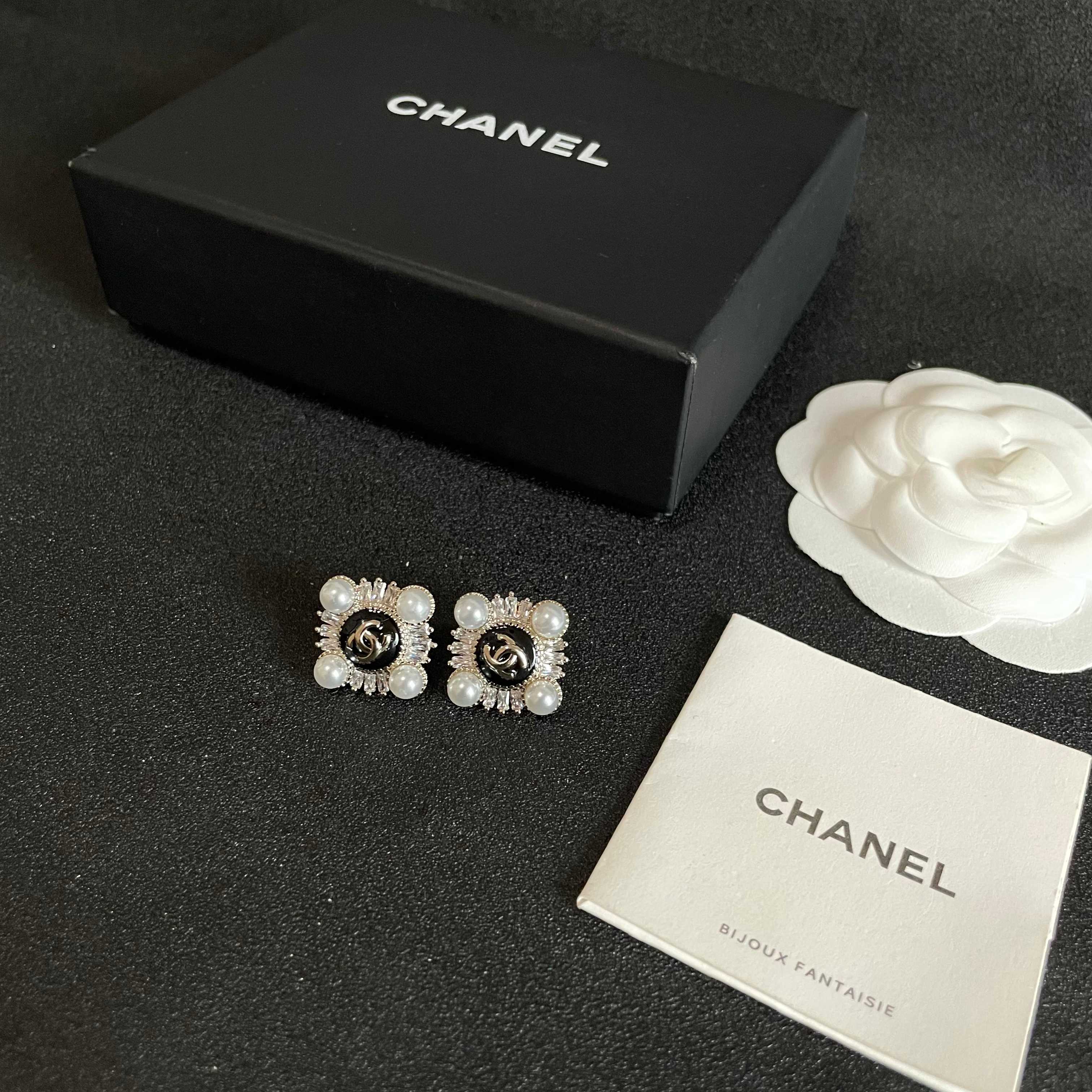 CHANEL 菱形太陽花 CC 標誌珍珠耳環