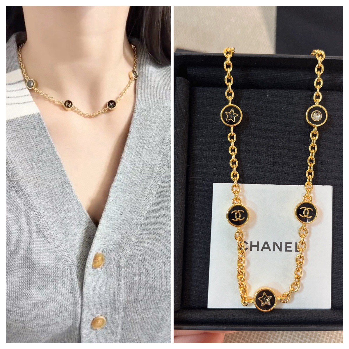 CHANEL 金邊小圓黑項鍊