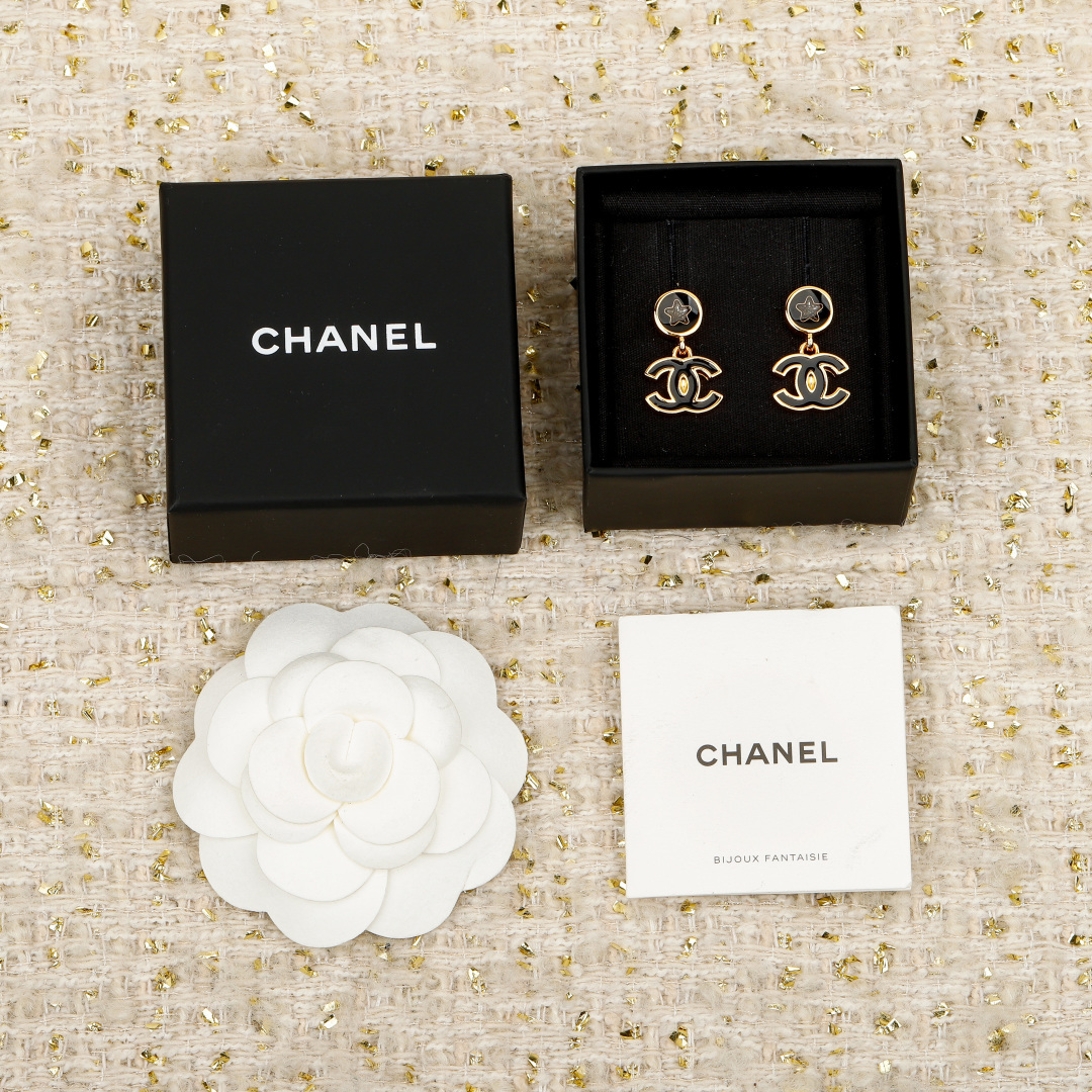 CHANEL 金黑星星水鑽圓餅吊 CC 耳環