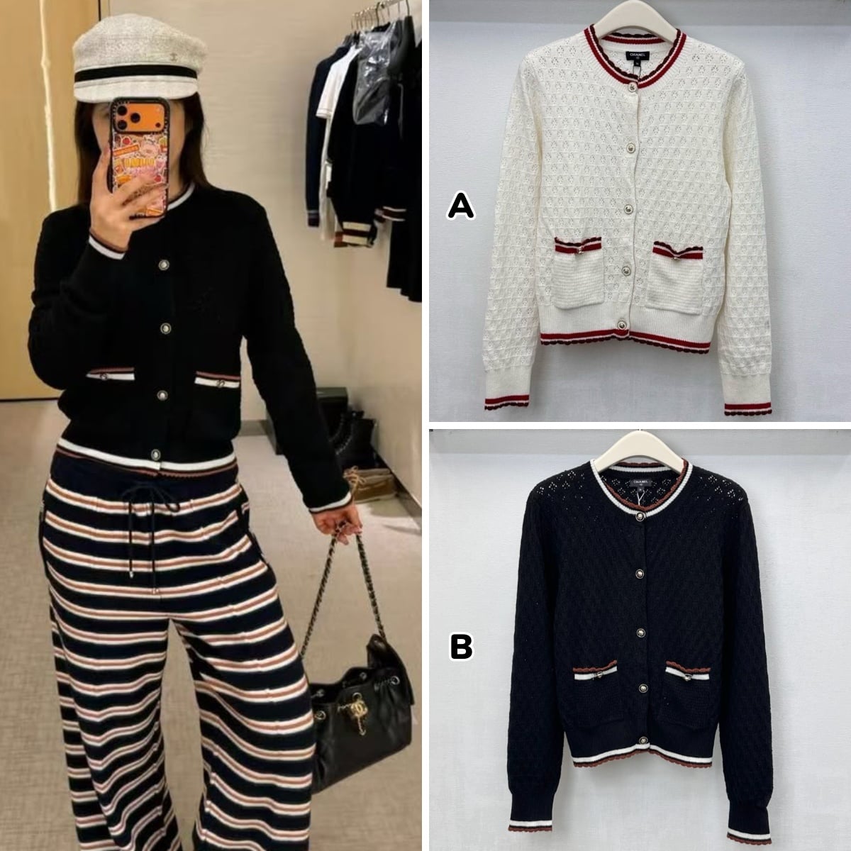 圓領剪裁,配上金屬紐扣和雙口袋,優雅又不失個性。鏤空工藝讓整體更透氣,春秋季節穿起來超舒服,不會悶熱~袖口跟下擺的撞色條紋,瞬間提升層次感,視覺上更豐富。