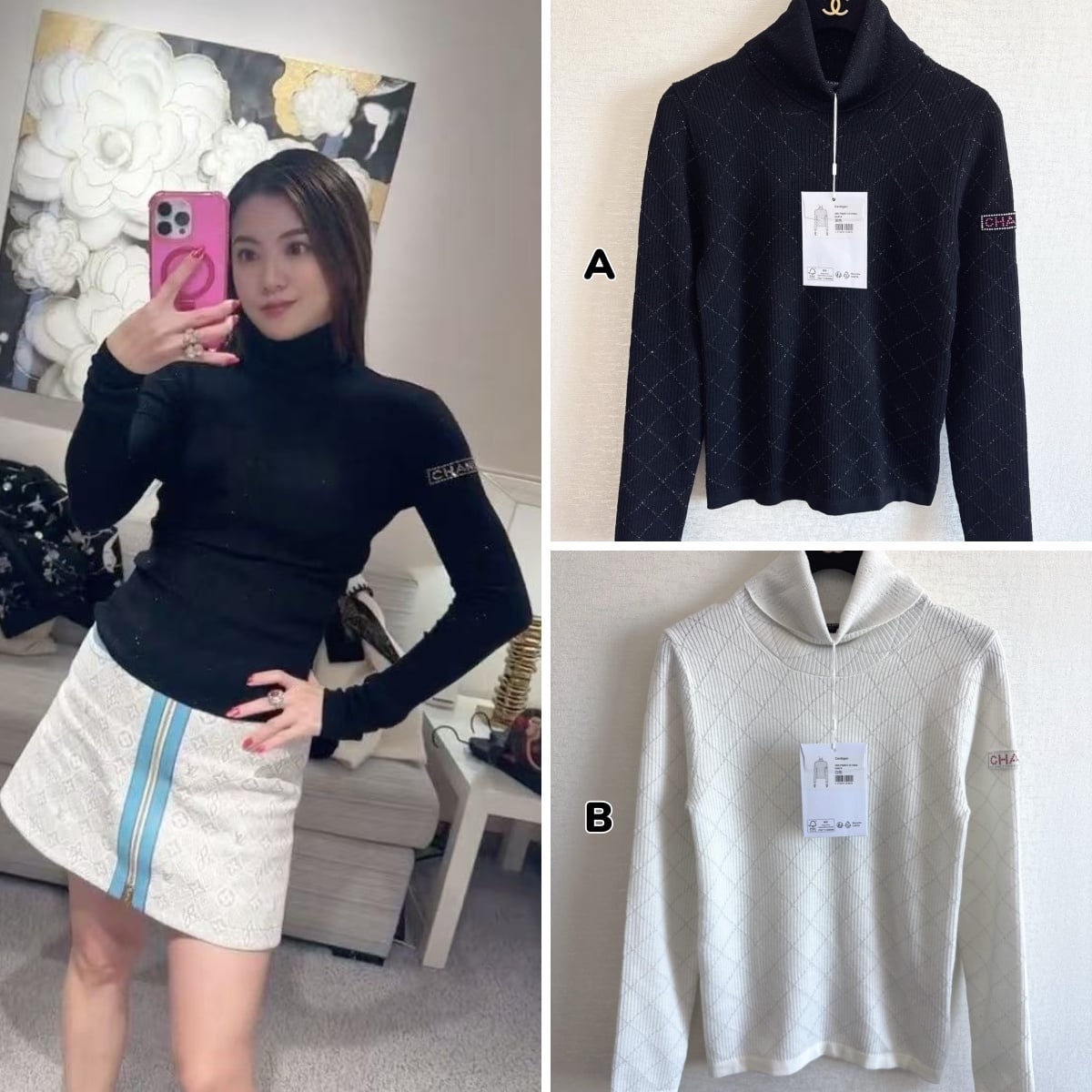 黑白兩色可選 ⚫⚪經典菱格紋理設計,優雅又充滿運動感 🏃♀️✨左臂燙鑽 logo 低調閃耀,還帶細閃銀絲 ✨在光線下低調發光,貴氣十足卻不張揚 🤍高領剪裁 🧣 保暖又時髦 🔥秋冬穿搭絕配 🍂❄️
