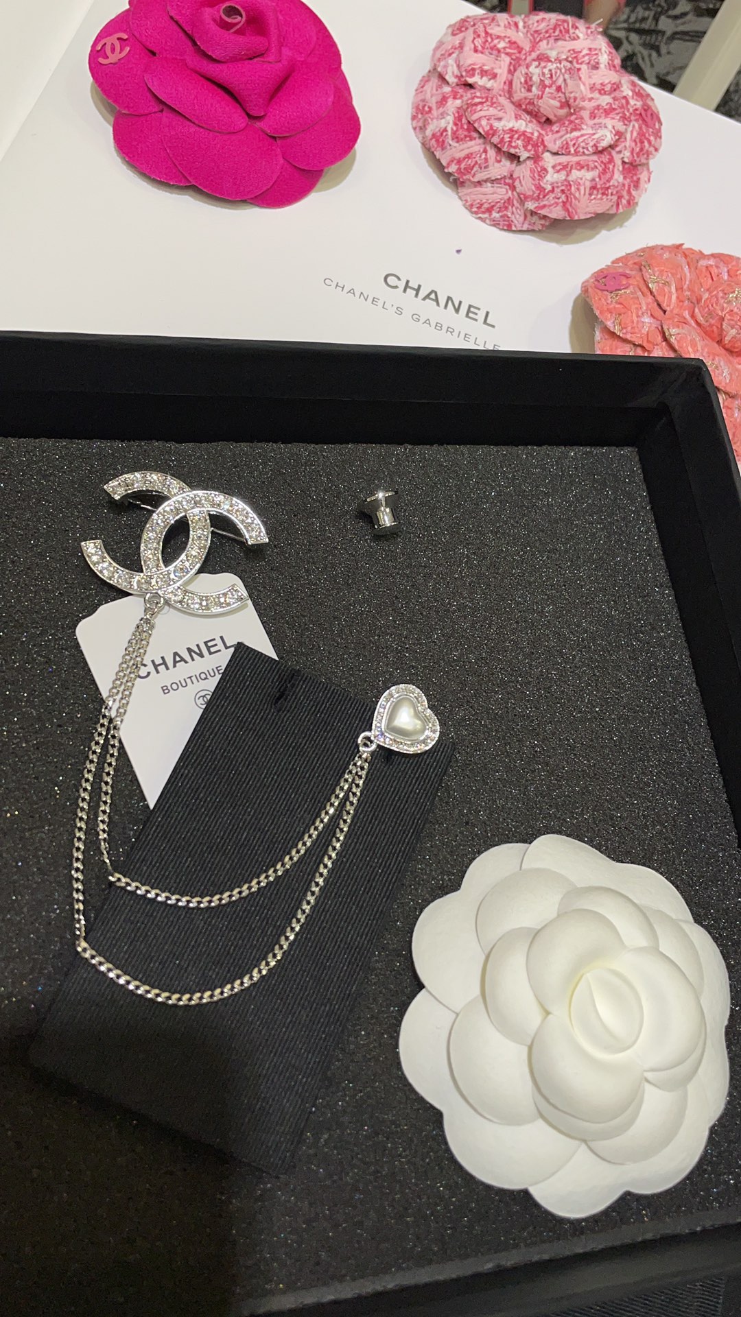 CHANEL 23B滿鑽CC愛心鏈條胸針