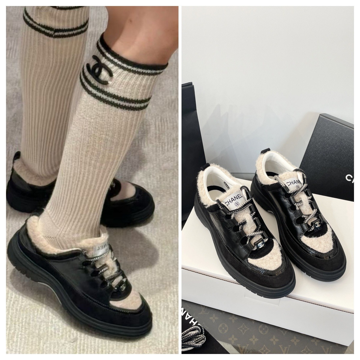 CHANEL 25b厚底泰迪毛毛真皮休閒鞋