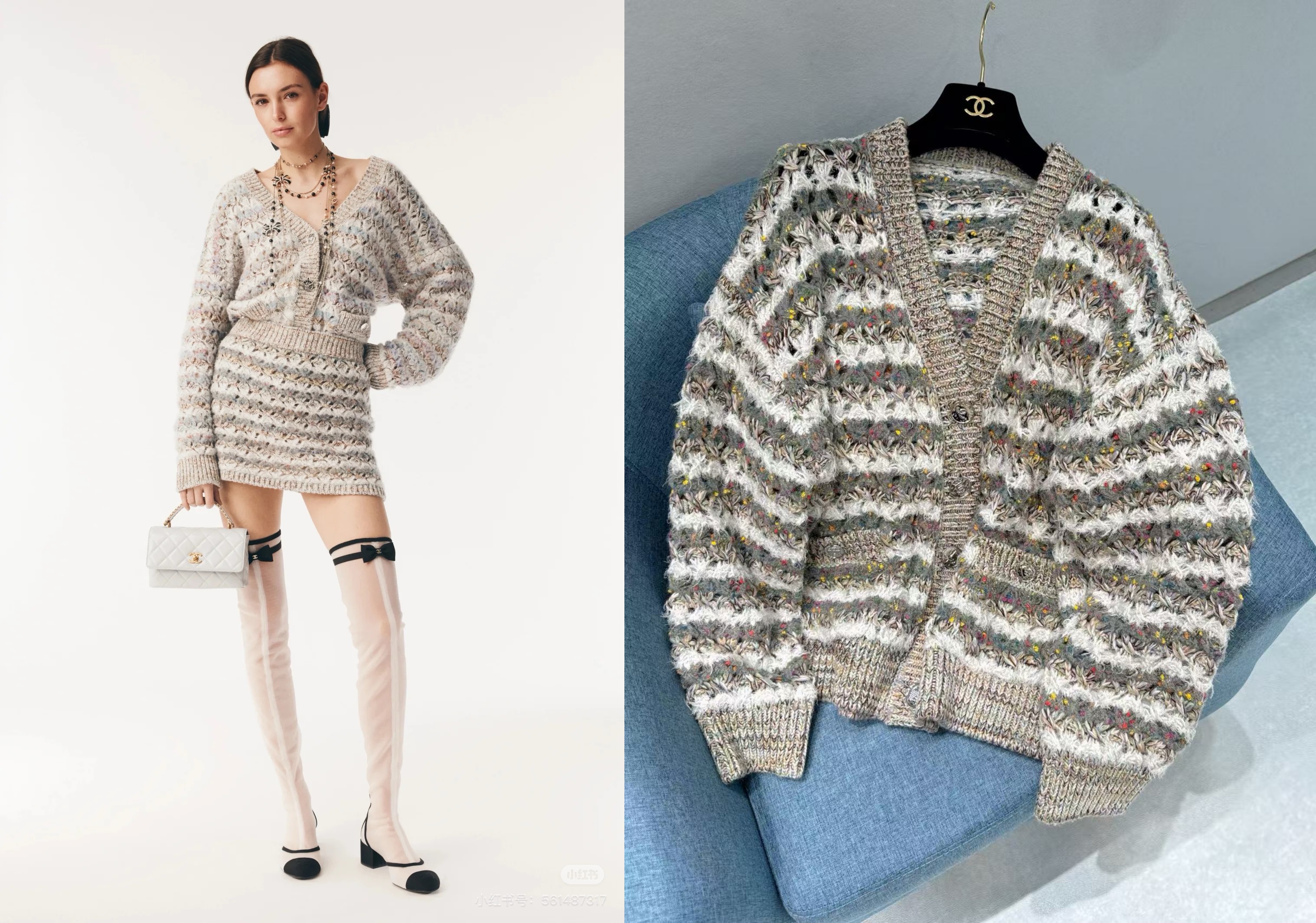 採用的特種紗定制,運用了間色工藝,其顏色豐富多樣,宛如一個絢麗的調色盤,使得開衫的紋理更加清晰、質感出眾。每一處色彩的過渡 都襯托著女性的魅力色彩