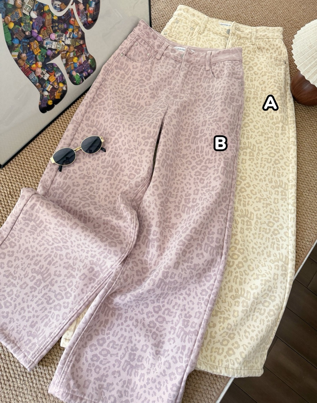 Calvin Klein 甜酷豹紋加絨直筒牛仔褲