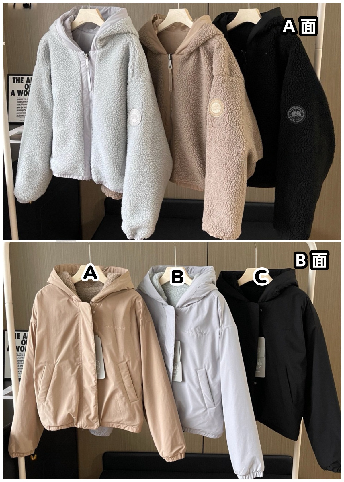 Canada Goose 短款雙面穿羊羔毛連帽拉鍊外套