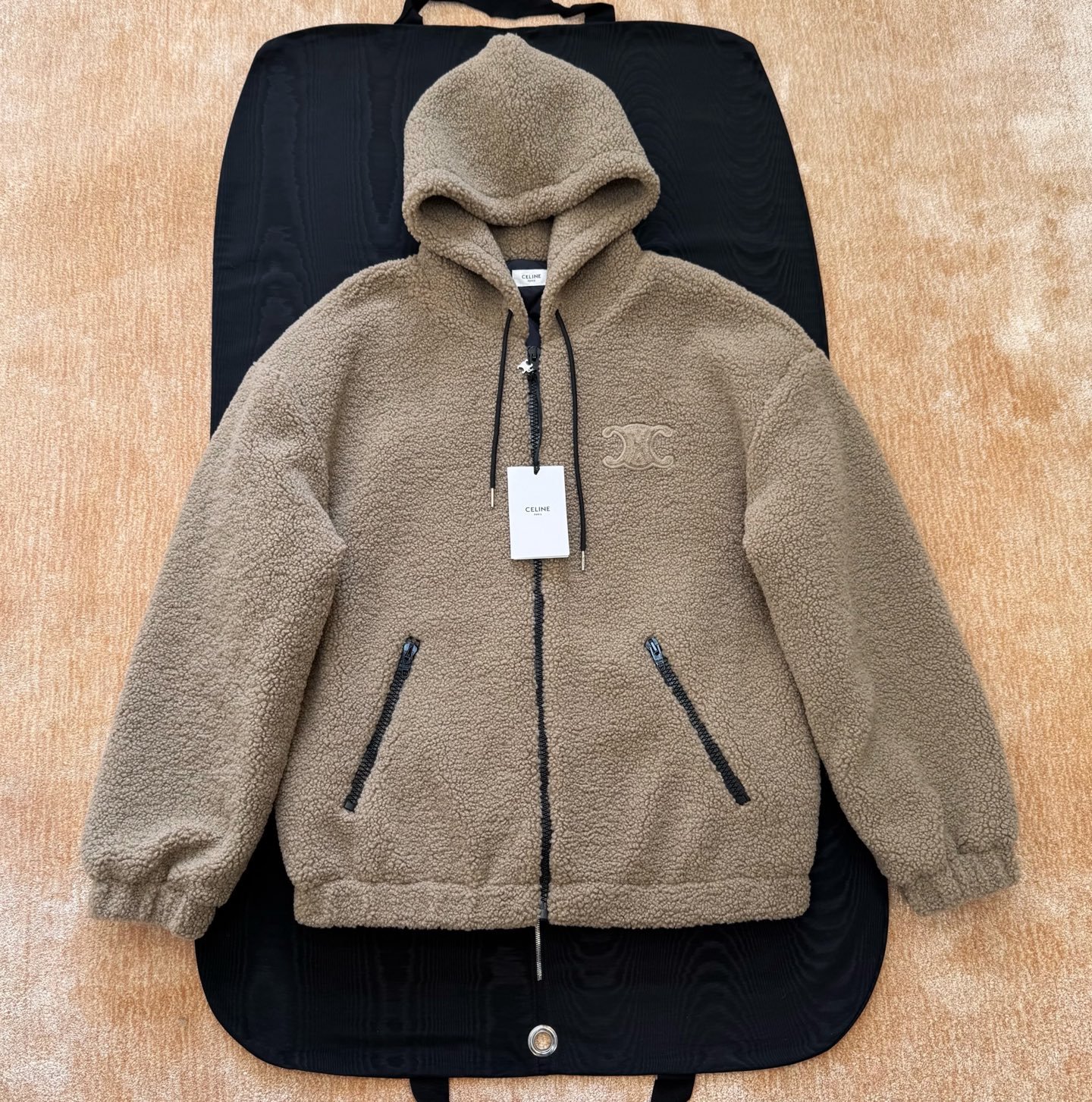 Celine 搖粒絨羊毛拉鍊連帽外套