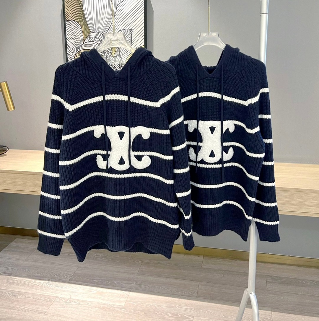 Celine 條紋連帽粗針織冷衫