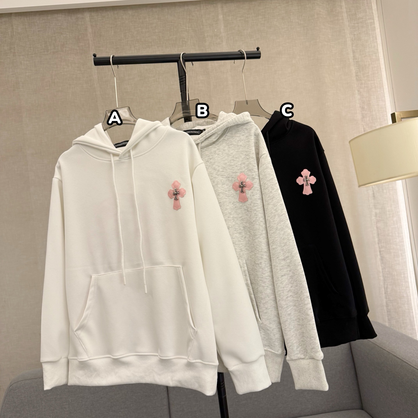 Chrome Hearts 後粉紅大馬蹄刺繡連帽衛衣