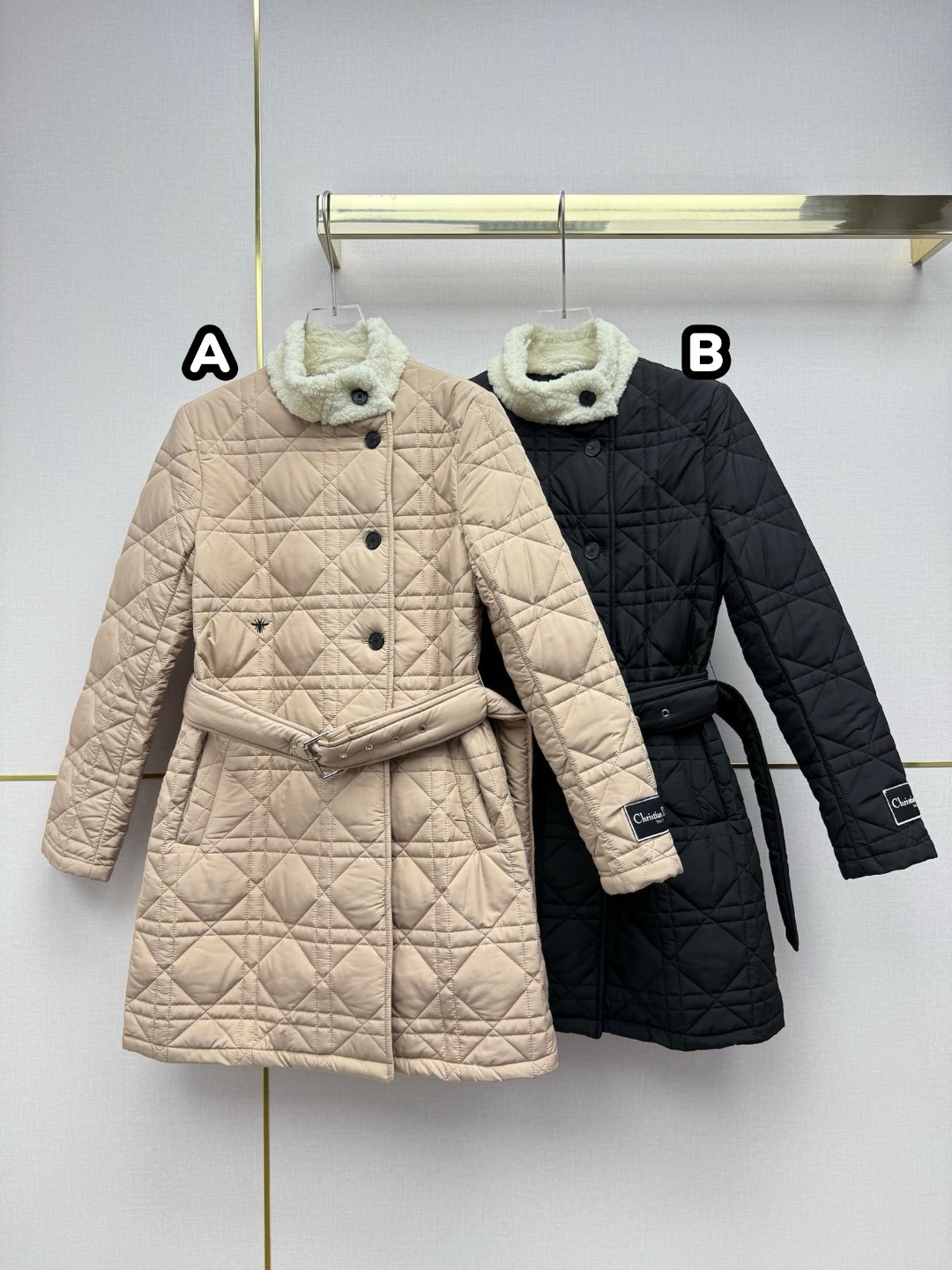 Dior 中長款藤格紋衍縫夾棉外套