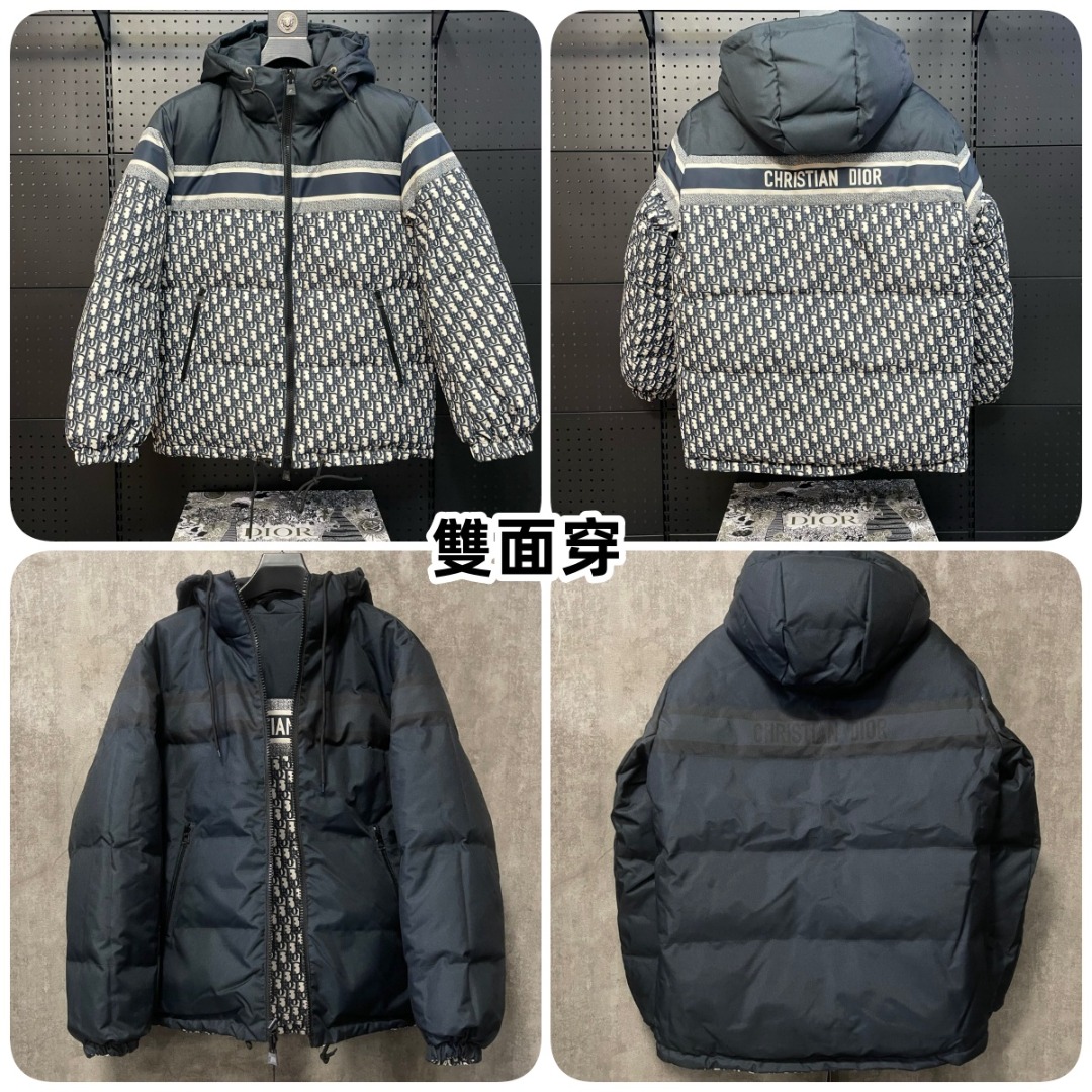 Dior 滿印提花雙面穿拉鍊連帽羽絨服外套