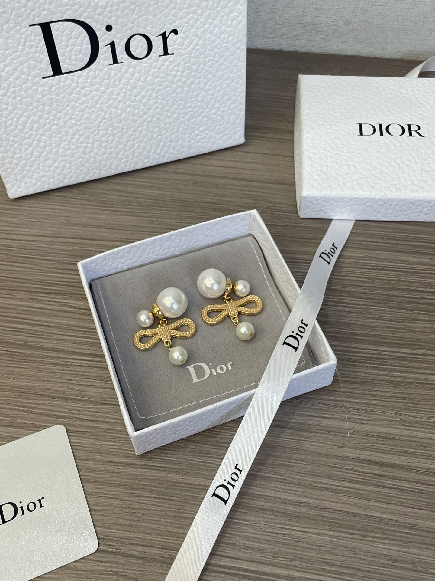 Dior 蝴蝶結珍珠耳環