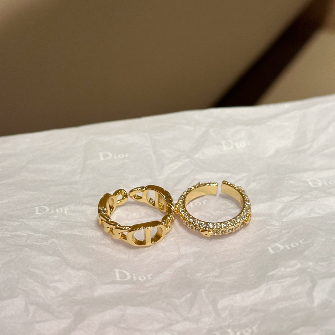 包含一枚飾有 CD 標誌的金色戒指,以及一枚鑲嵌白色水晶的星形密鑲戒指。