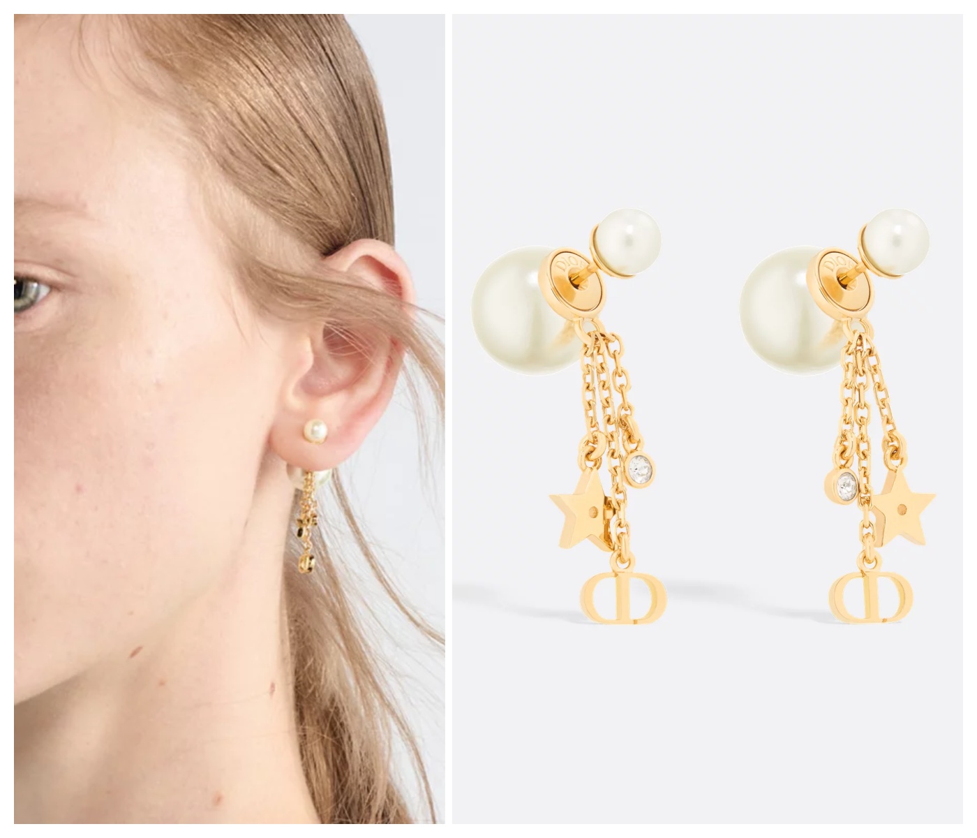 Dior Tribales 星鑽CD流蘇雙珠耳環