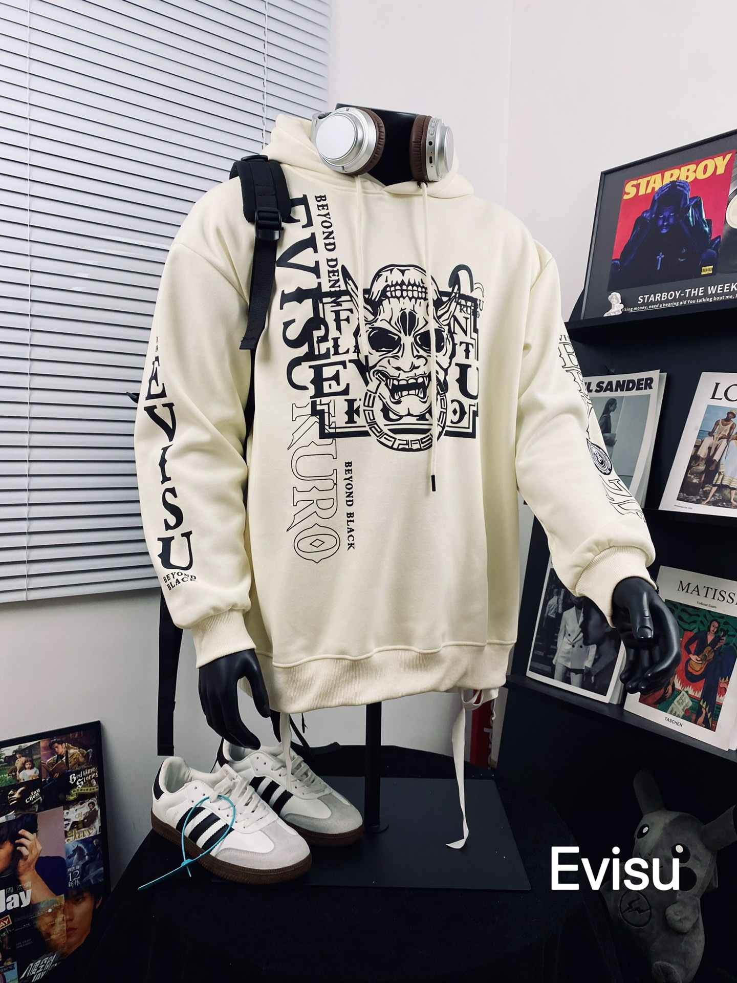 EVISU 植絨達摩印花加絨連帽衛衣
