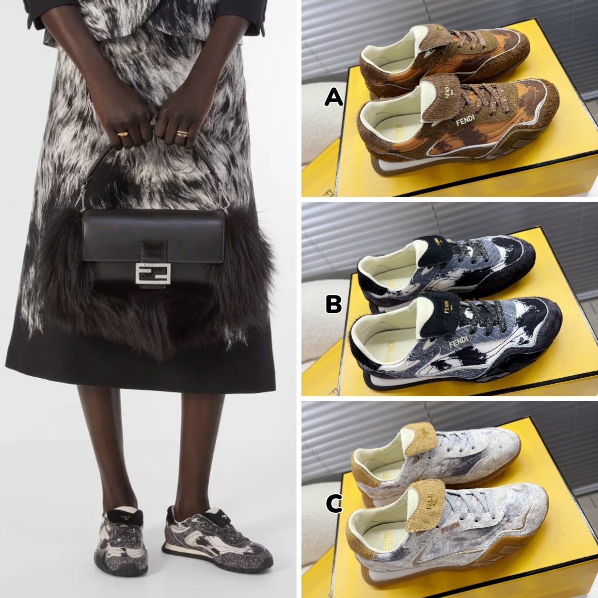 FENDI Wave Pulse繫帶低筒運動鞋👟秋冬新款❄️ 科技布料+潑墨設計🎨 色彩漸變超有層次感✨ 小牛皮翻摺鞋舌+金色FENDI標誌 復古又低調🖤 同色系管狀彈力鞋帶+魔術貼讓包裹感更自然👌 非常適合日常散步🚶♀️運動休閒🏃♂️情侶穿著💞