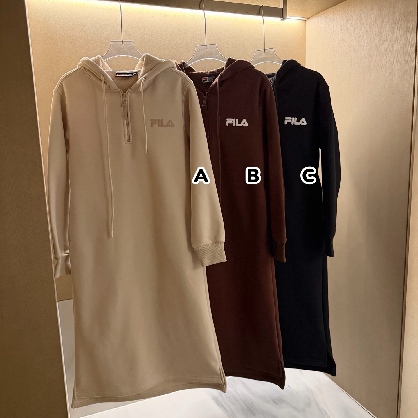 FILA 加絨顯瘦連帽衛衣連身長裙