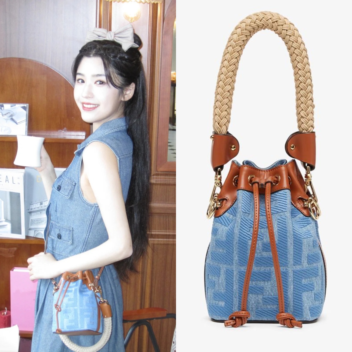 Fendi將經典水桶包款Mon Tresor穿上時尚的丹寧材質🌈還選用修有FF典藏圖紋的藍色牛仔布作為底布,而開關的部份選用抽繩開合作為設計👍搭配顯眼的草編手柄,年輕感十足🤩同樣也是可以手提或是肩背,喜歡配搭什麼造型都可以啊💯