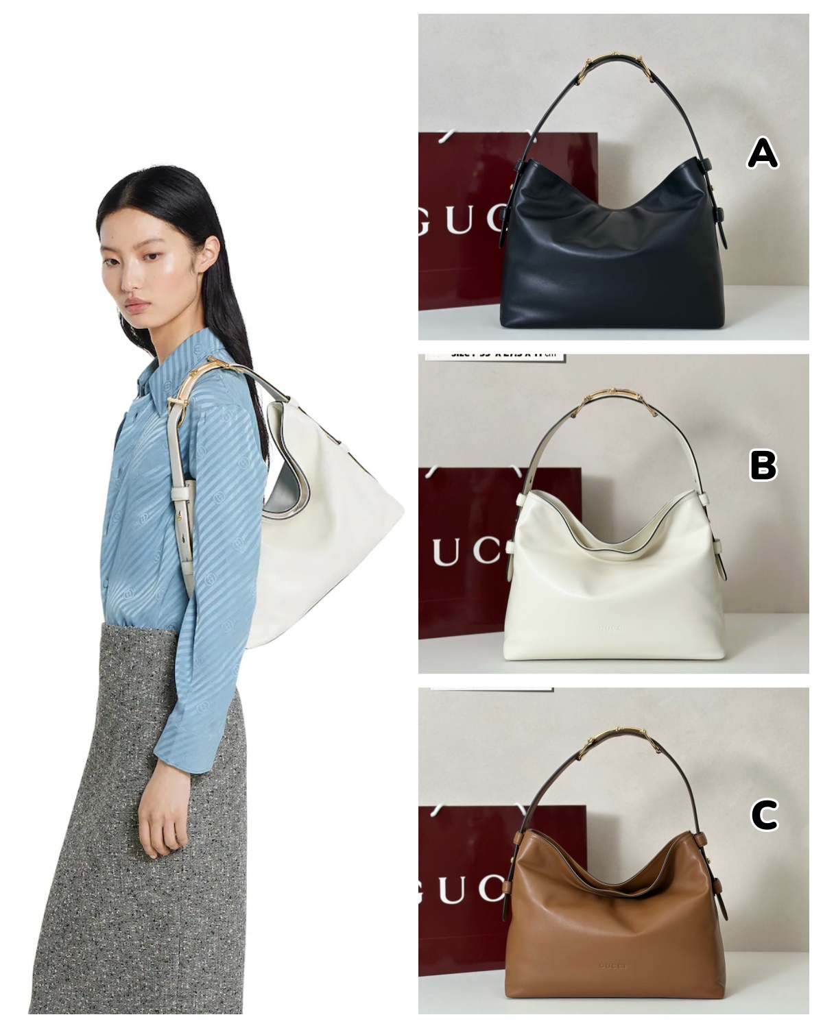 全新上市的Beatrix包款👜 選用了輕盈柔軟的Future Lux小牛皮🐄 讓硬挺俐落與慵懶隨興兩種相異的形容詞得以並存💫 甚至在肩背或將皮帶重疊手持時包款的輪廓也有不同變化🎀 宛如一包二用✨ 經典的Horsebit馬銜扣則在寬版的提帶上成為隱藏版設計亮點🌟 強化耐用度並具視覺裝飾效果👁️ 內裡貼心配置拉鍊內袋方便收納小物📱🔑 3個顏色可滿足不同人群在不同場合使用💯