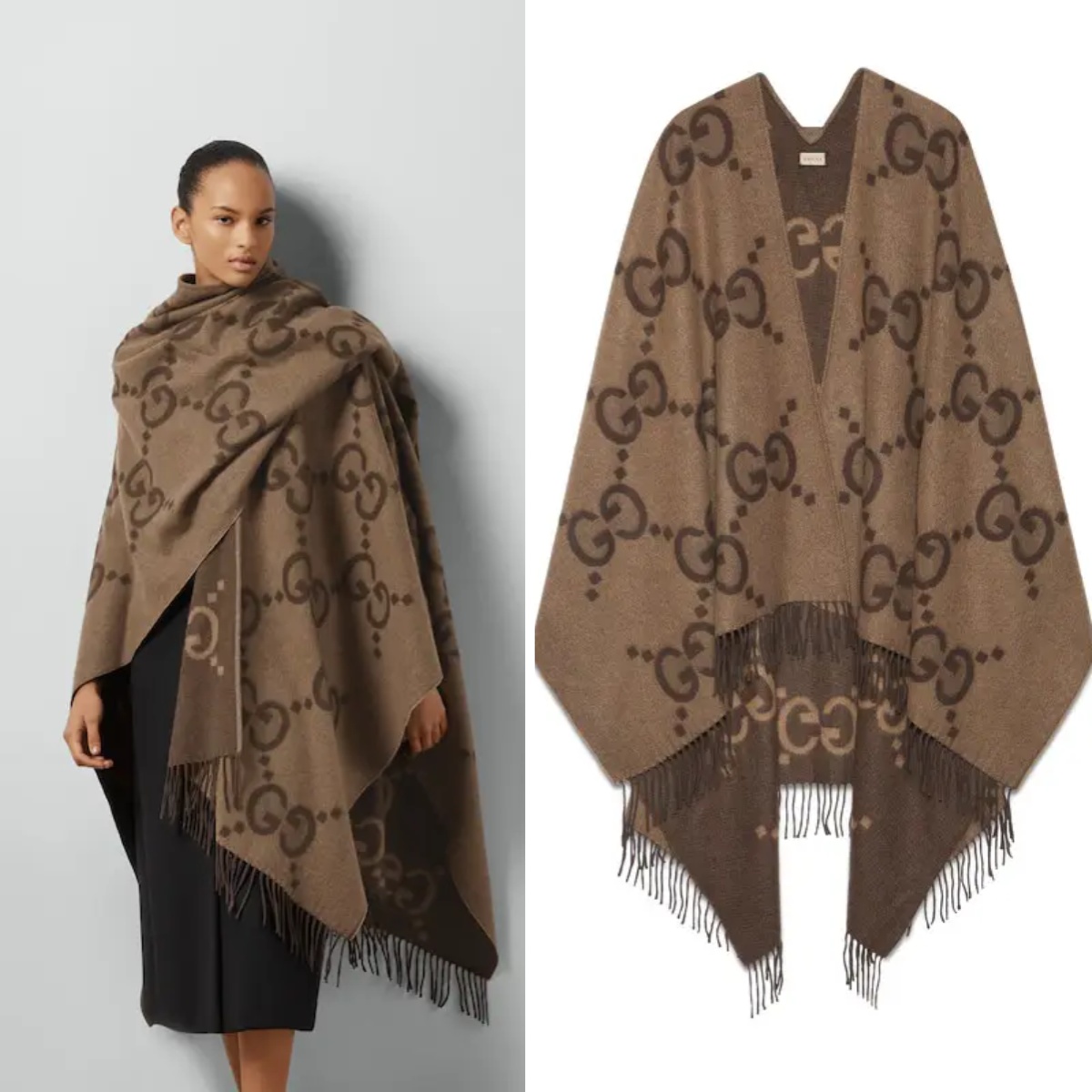 GUCCI Reversible Jumbo GG cashmere cape GG嵌花羊絨披肩
