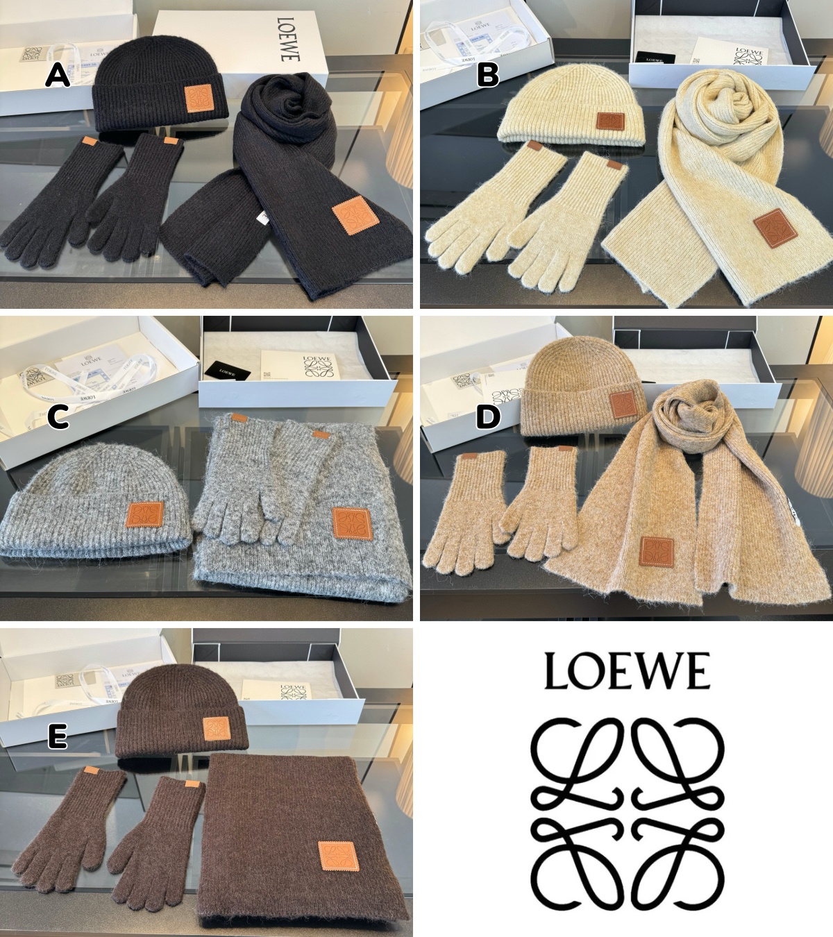 LOEWE 羊毛兔毛混紡冷帽➕頸巾➕手套套裝