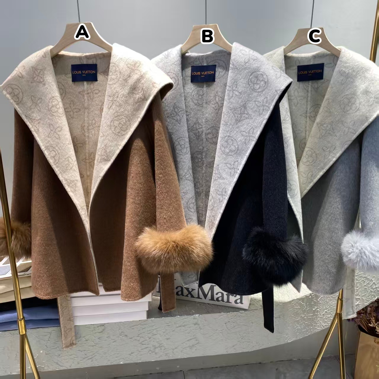 LV 超大狐狸毛连帽羊毛大衣