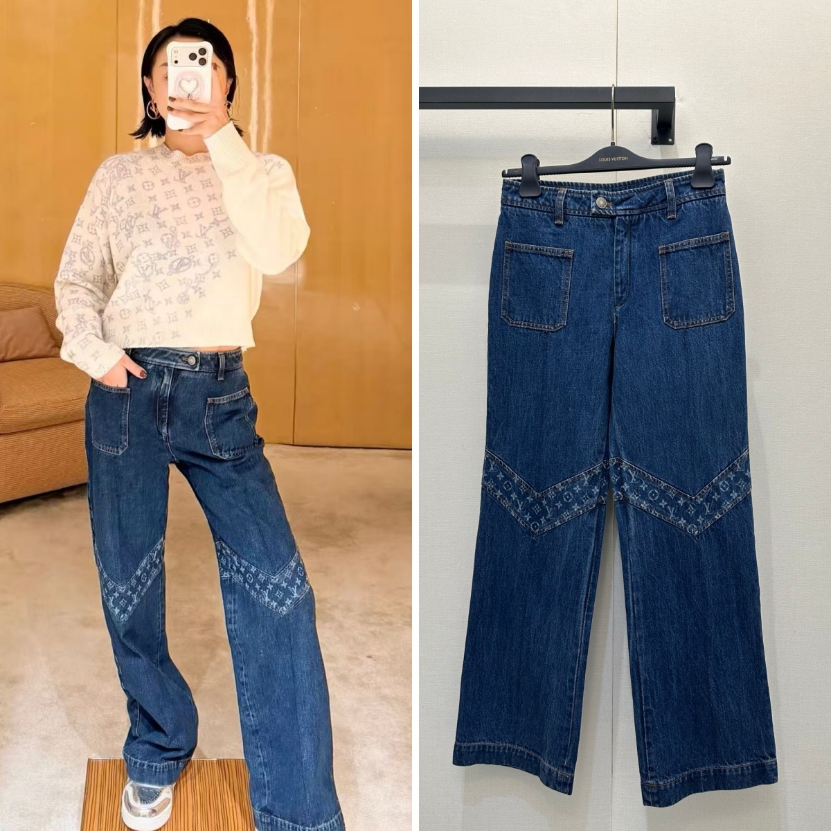 LV Monogram Accent Raw Denim Jeans 標誌裝飾直筒牛仔褲