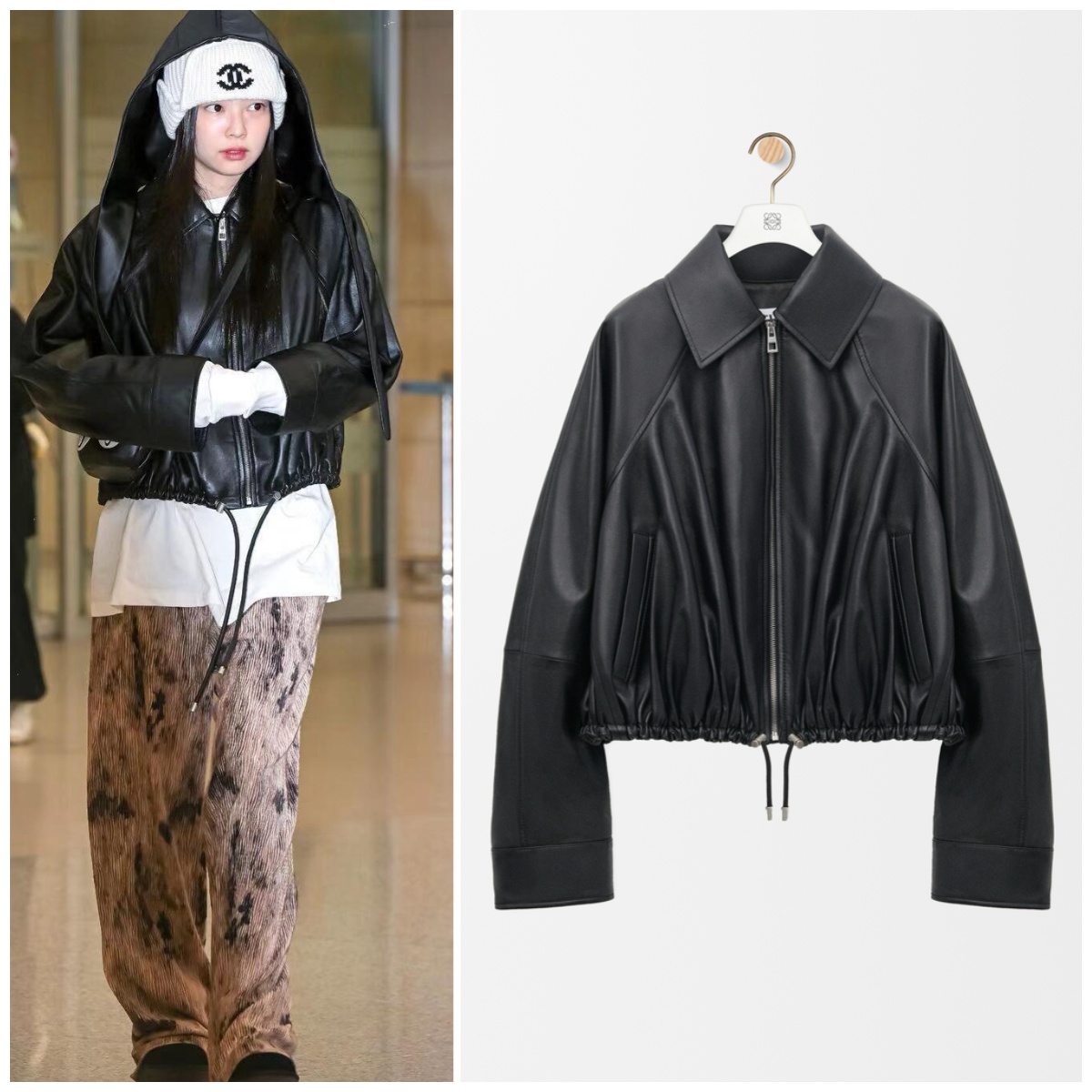採用柔軟輕盈的皮革製成的外套,輪廓寬鬆,下擺配有可調節的皮革抽繩