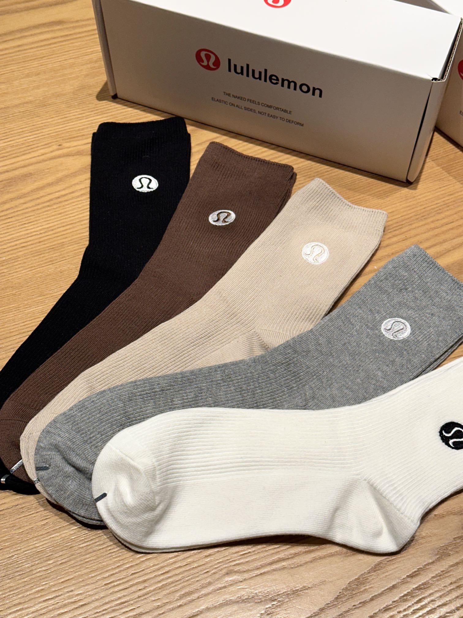 Lululemon 秋冬款簡約中筒棉襪(一套5對)