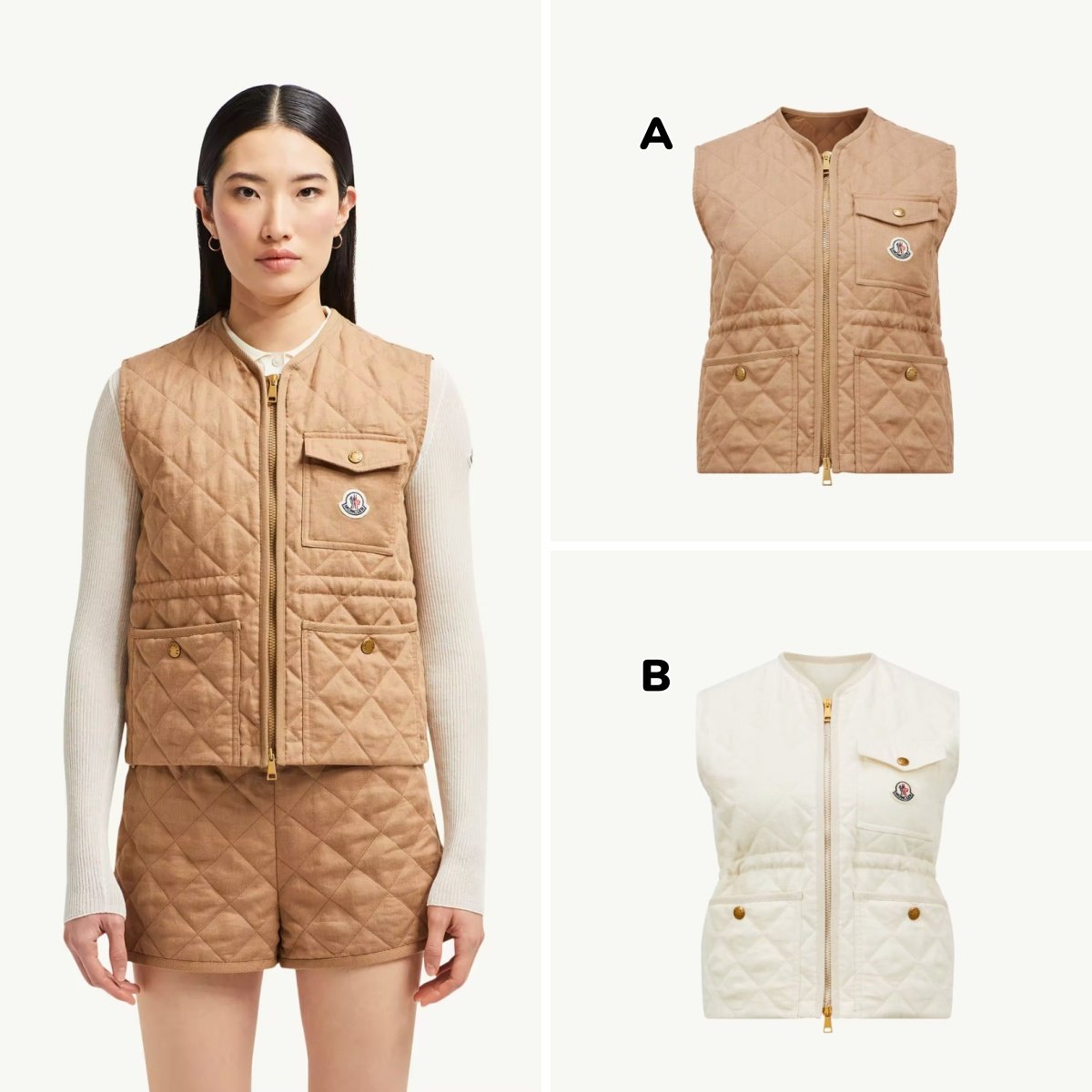 MONCLER VIGNY女士菱形绗缝加衬亚麻马甲背心